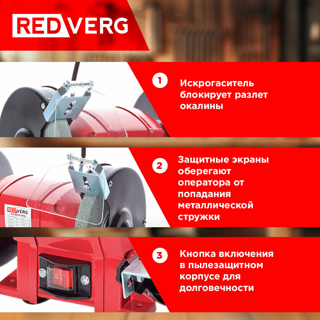 Redverg Станок заточной RD-BG175-370L интересное: