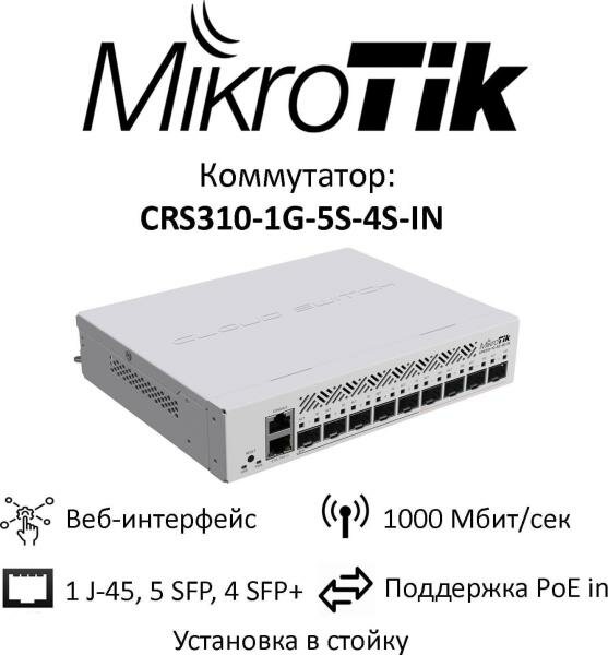 Купить Коммутатор MikroTik CRS310-1G-5S-4S+IN / портов-1, управляемый, 1000 Мбит/сек, 100 Мбит/сек, 10 Гбит/сек, SFPx9, PoE