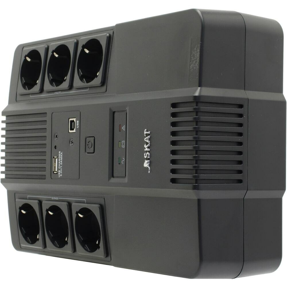 452 SKAT-UPS 800 AI ИБП 220В 480Вт 1АКБ 9Ач внутр. меандр. стаб-ция напр-я. 6 выходов