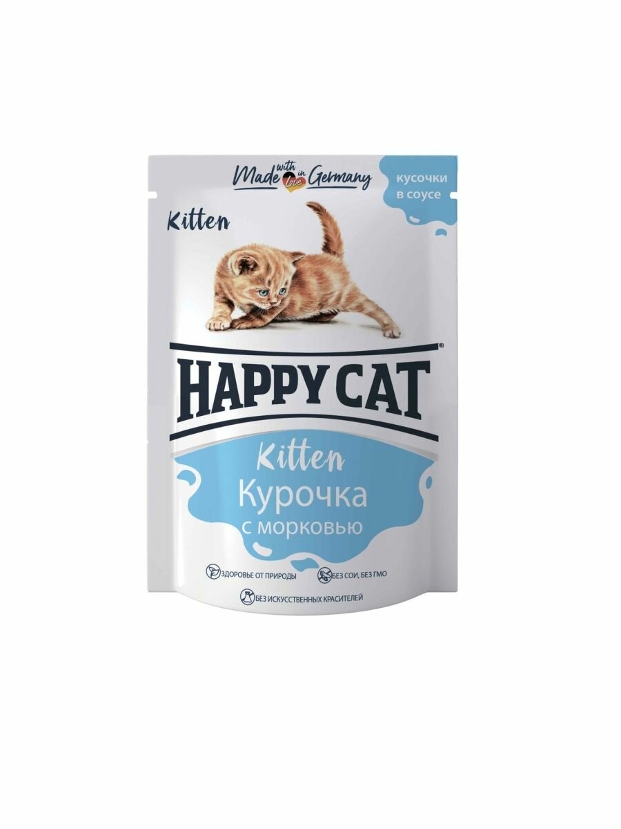 HAPPY CAT для котят с курицей и морковью в соусе пауч 100 гр 7502312 NEW 100 гр х 6 шт