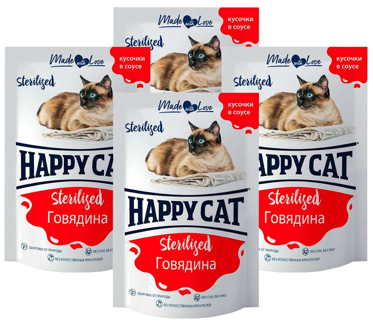 Купить HAPPY CAT STERILIZED для взр кастрир котов и стерил кошек с говядиной в соусе пауч 85 гр 7504216 85 гр х 4 шт