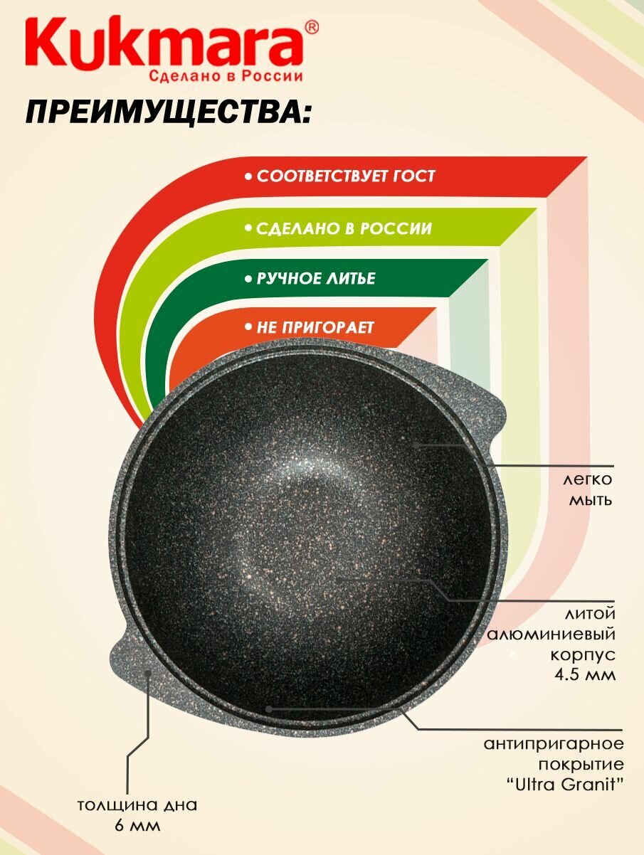 Казан KUKMARA Granit ultra original индукция а/пр литой 3,5л кгои37а