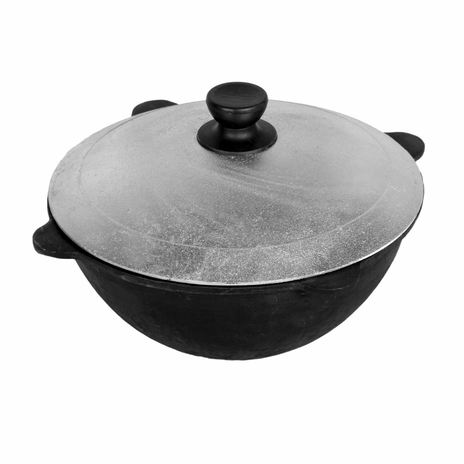 Чугунный казан с круглым дном и крышкой (объем 6 литров), цвет не указан