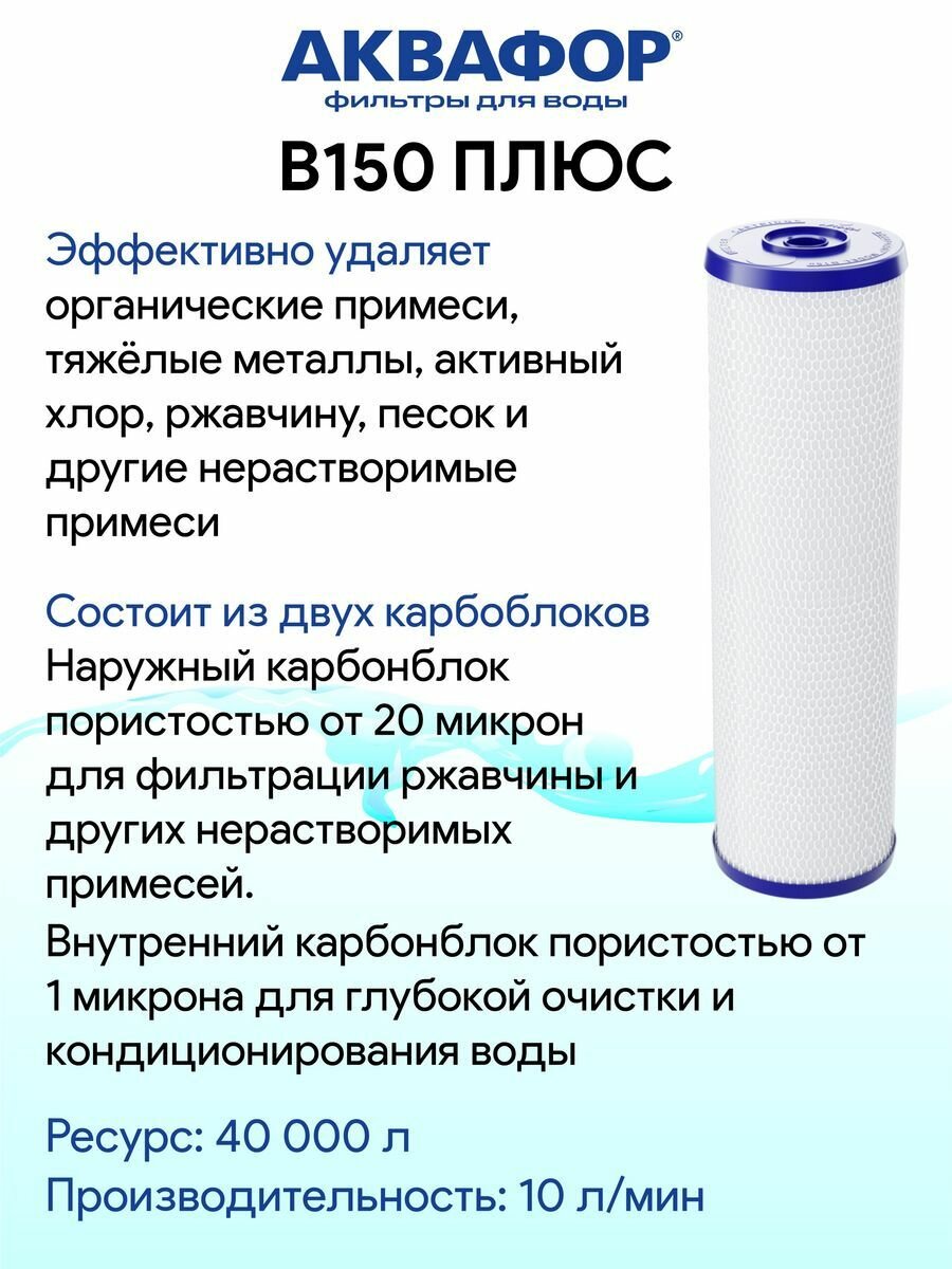 Картридж Аквафор B150 плюс для проточных фильтров, ресурс 40000 л