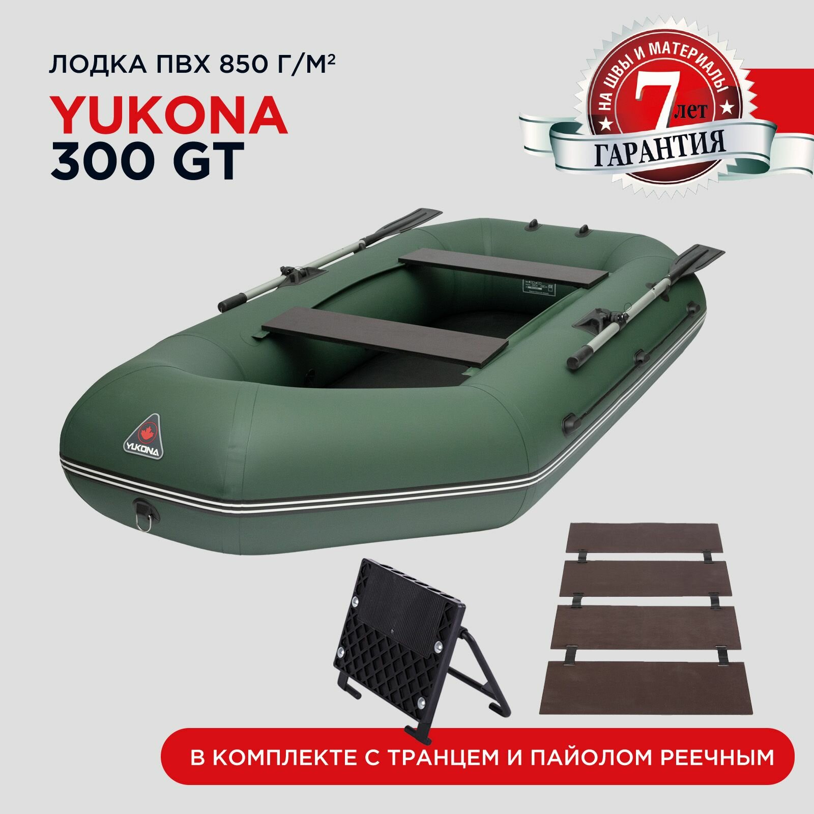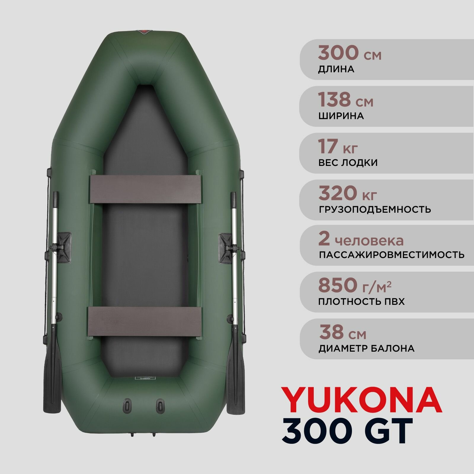 Лодка ПВХ YUKONA 300 GT под мотор двухместная надувная гребная для рыбалки с реечным пайолом, зеленая интересное:
