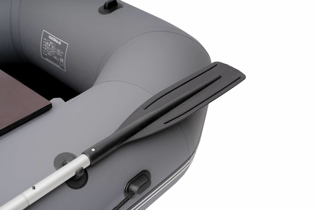 Лодка ПВХ YUKONA 300 GT под мотор двухместная надувная гребная для рыбалки с реечным пайолом, серая интересное: