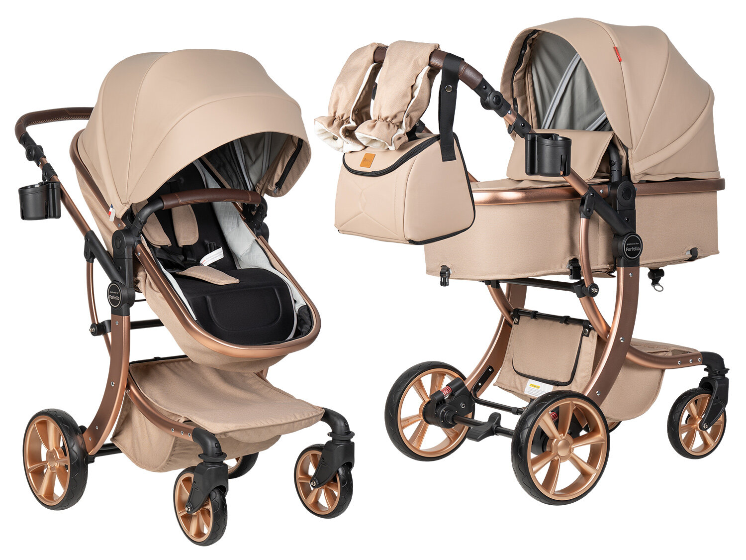 Коляска трансформер 2 в 1 для новорожденных Aimile Original Autumn, Экокожа, Кремовый