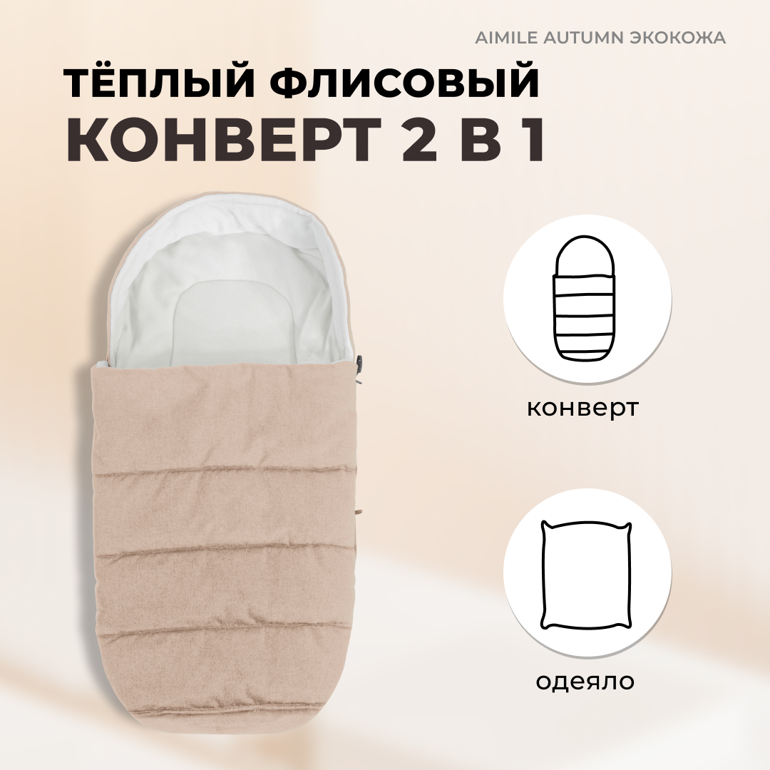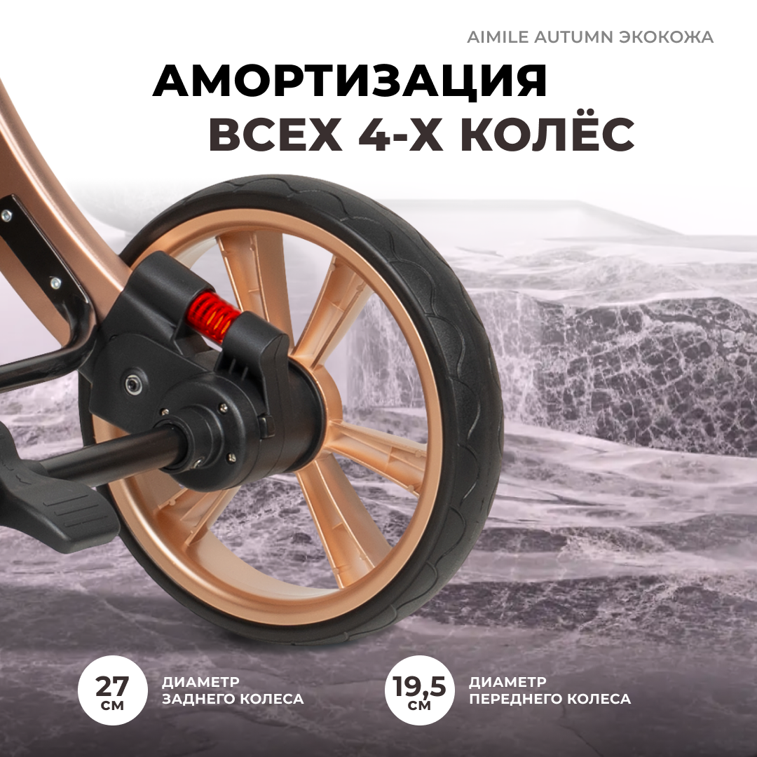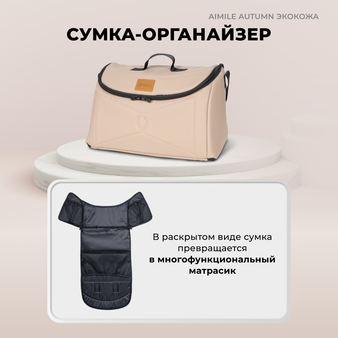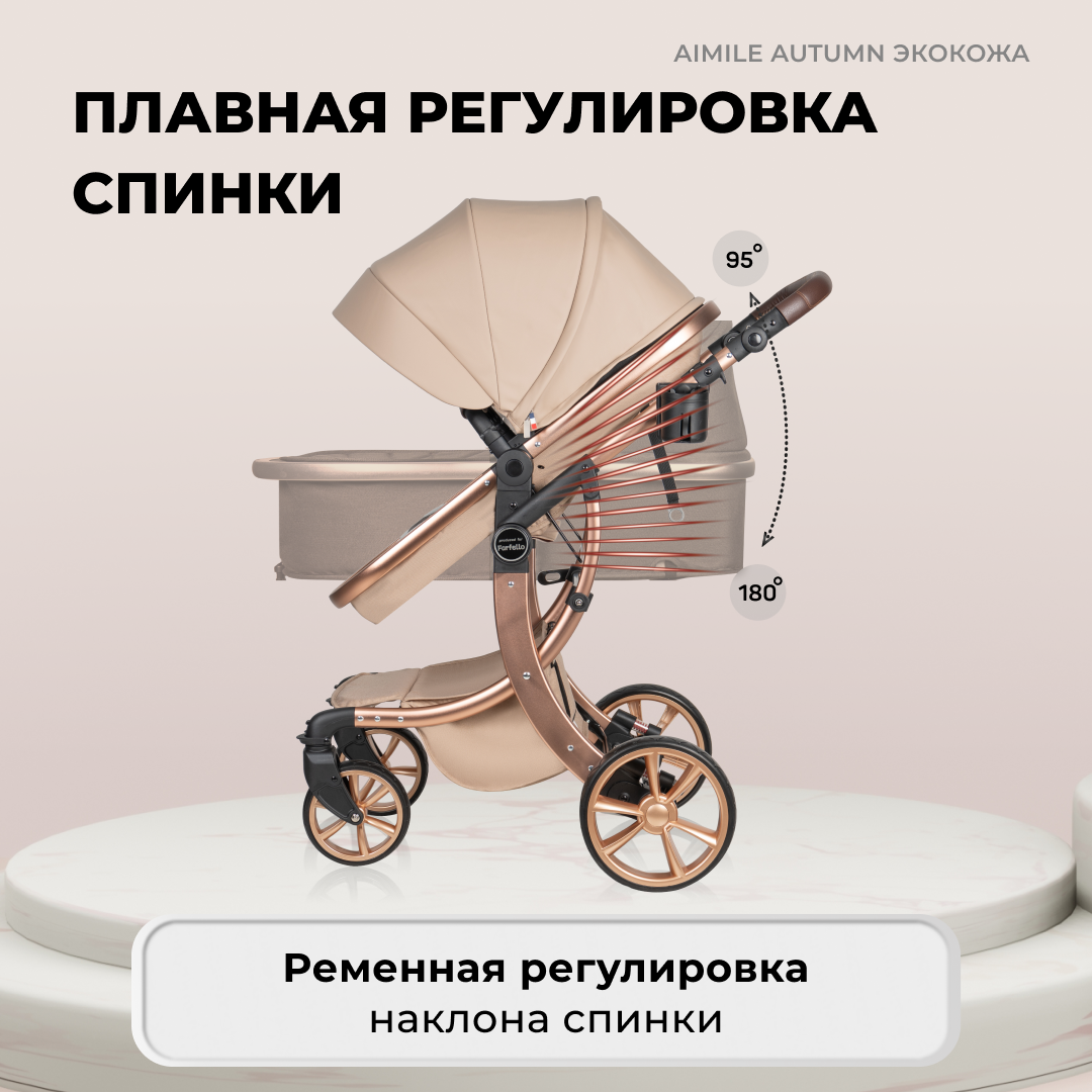 Коляска-трансформер для новорожденных Aimile Original Autumn, экокожа, Космический латте