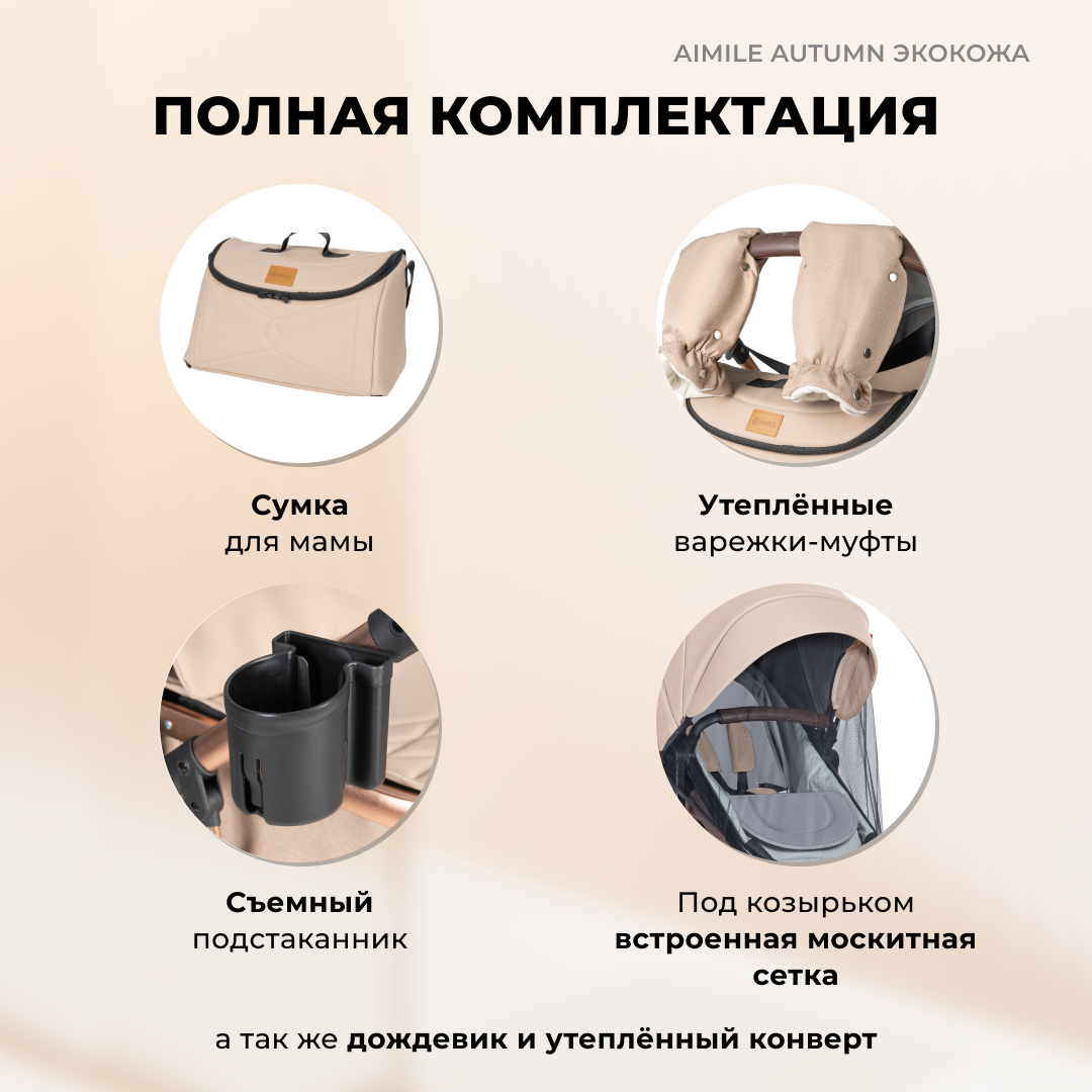 СохранитьКоляска-трансформер для новорожденных Aimile Original Autumn, экокожа, кремовый интересное: