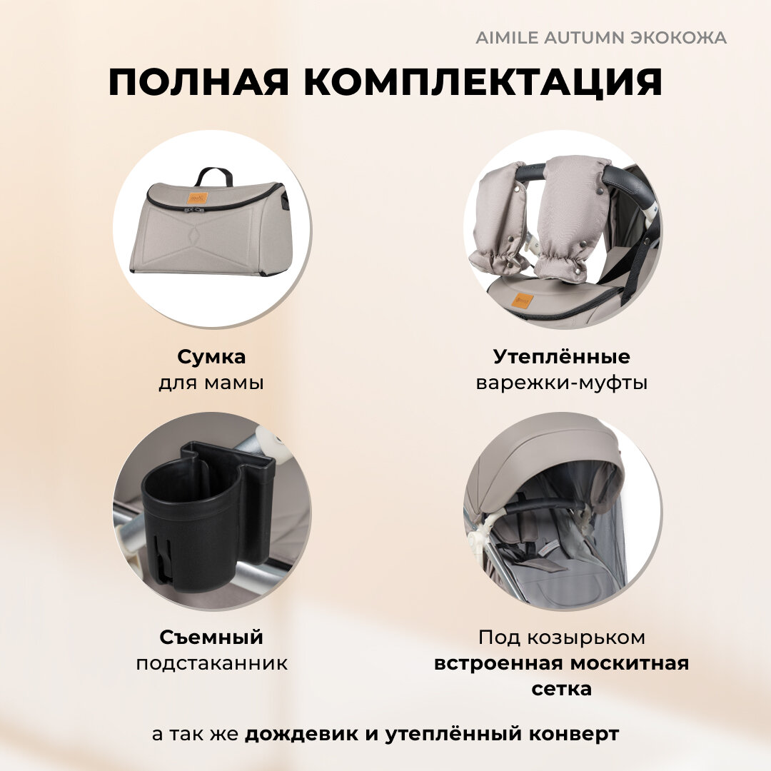 Купить Коляска-трансформер для новорожденных Aimile Original Autumn, экокожа, Космический латте