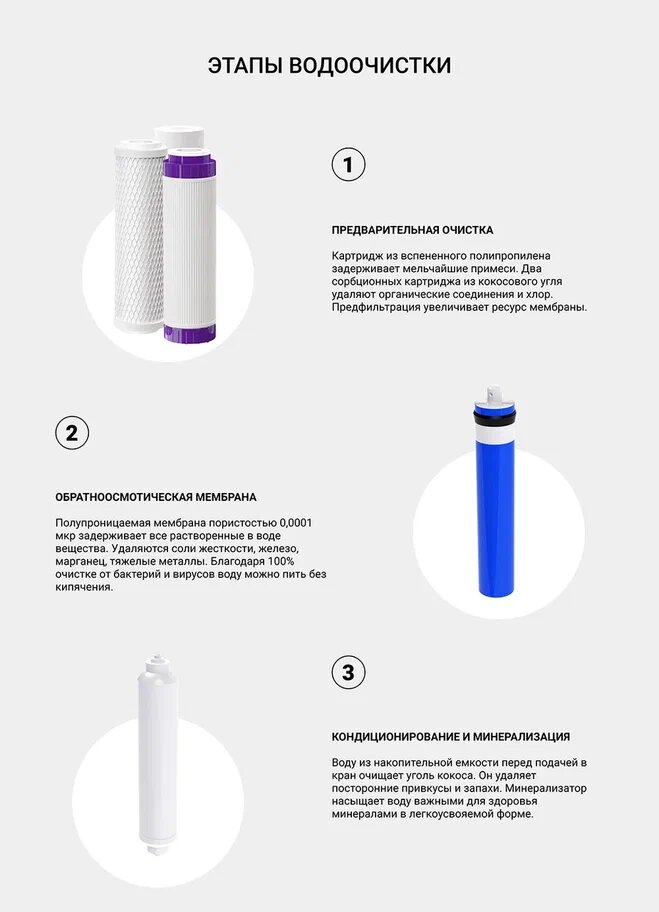 | В комплекте | кран / накопительная емкость / фильтрующий модуль |