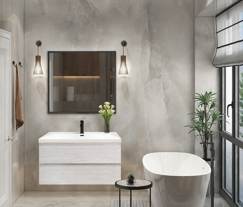 Тумба-умывальник Comforty Осло 80 бетон светлый с раковиной Fest 80