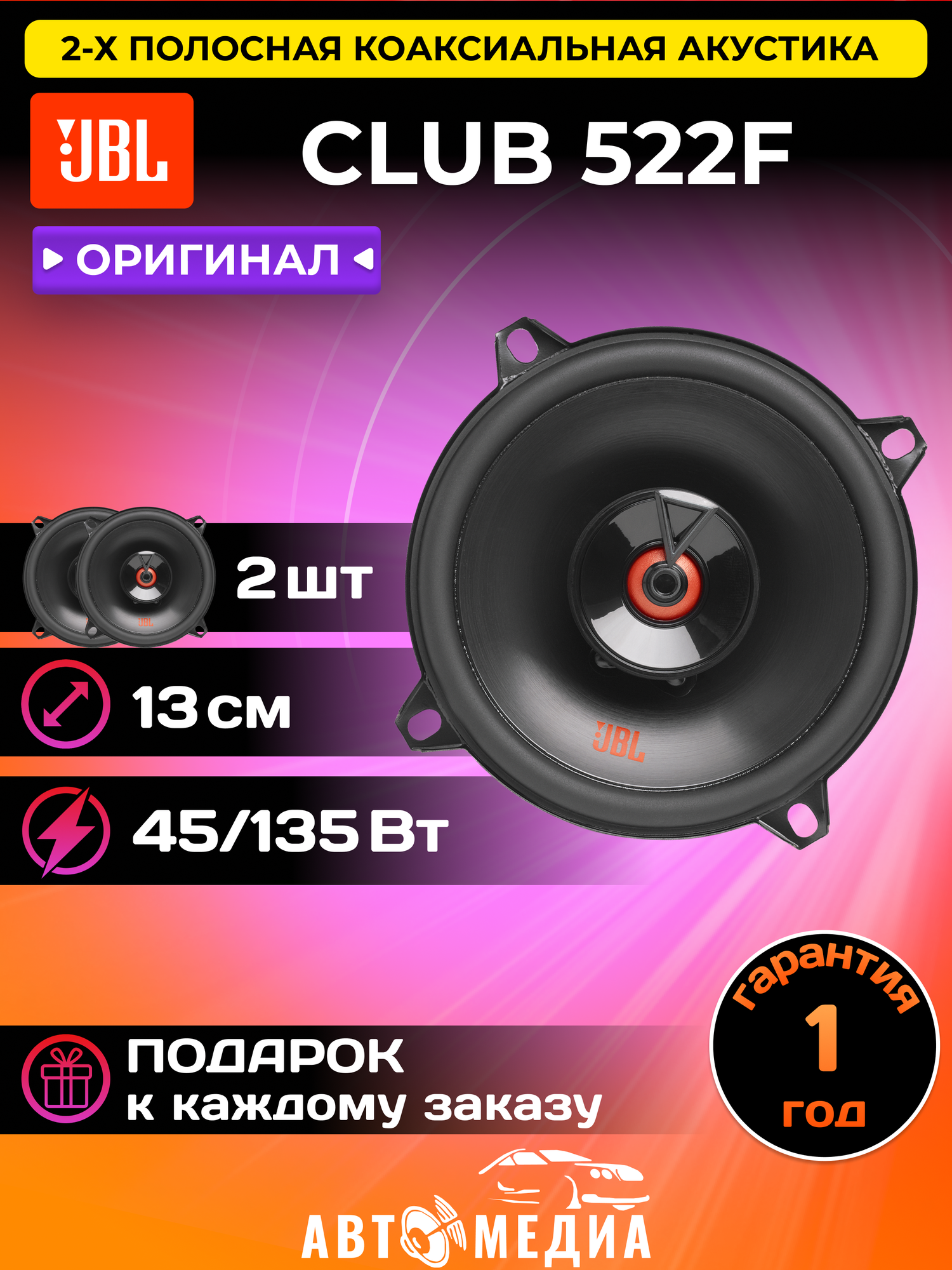 Автомобильная двухполосная коаксиальная акустика JBL CLUB 522F