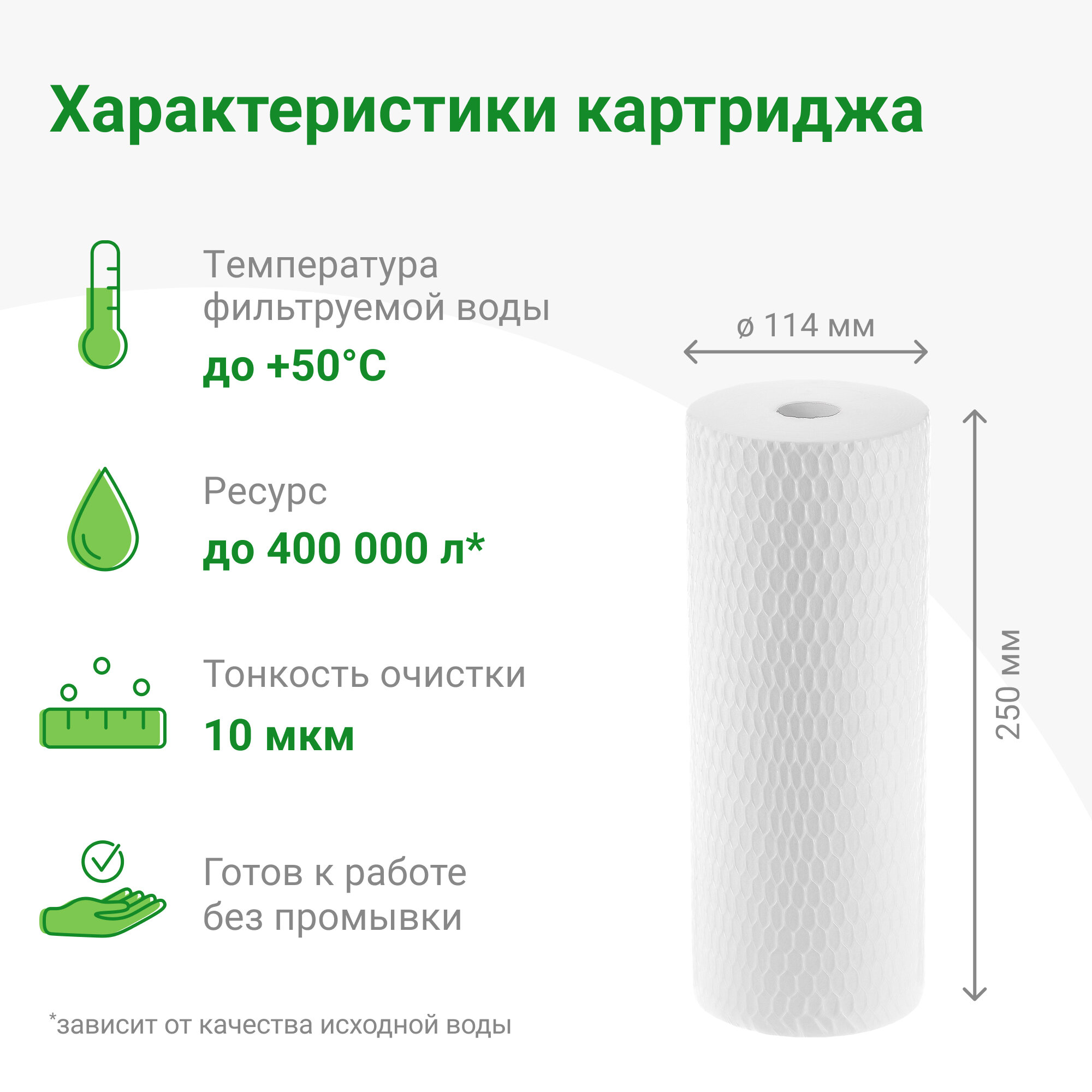 Купить Картридж механический Гейзер ПФМ 20/10 10BB, эффективная очистка воды от механических примесей, 28224