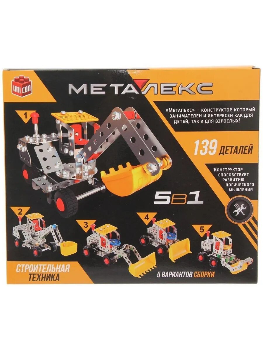 Конструктор металлический Строительная техника, 5 в 1, 139 деталей