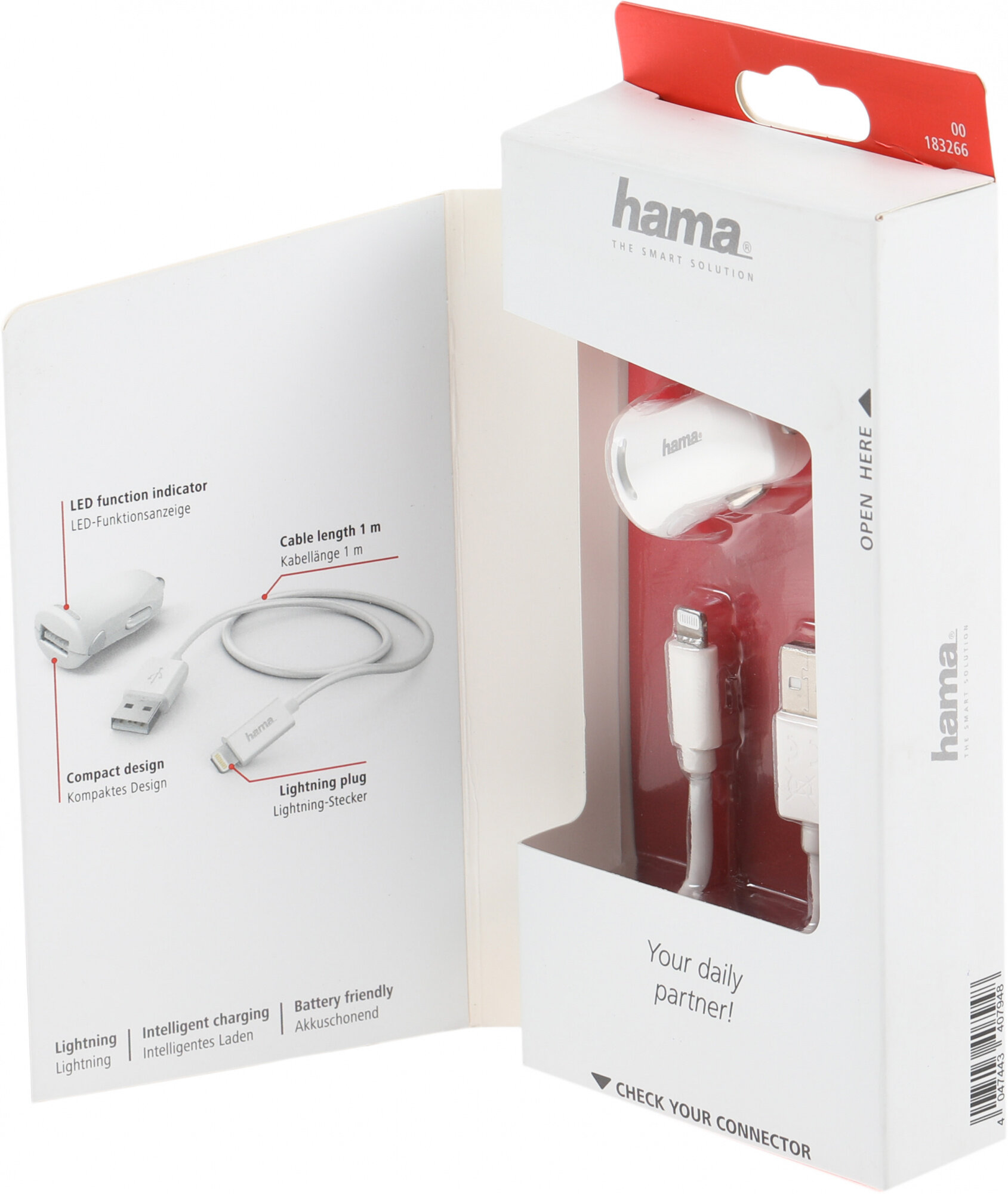 Автомобильное зарядное устройство HAMA H-183266 8-pin Lightning 2.4А белый