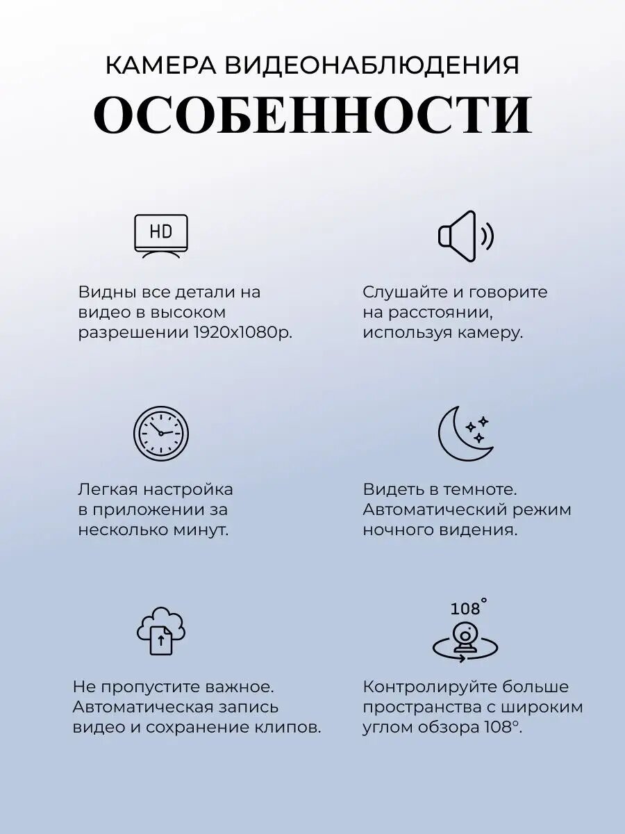 IP-камера видеонаблюдения Wi-Fi для дома с обзором 360 градусов белая