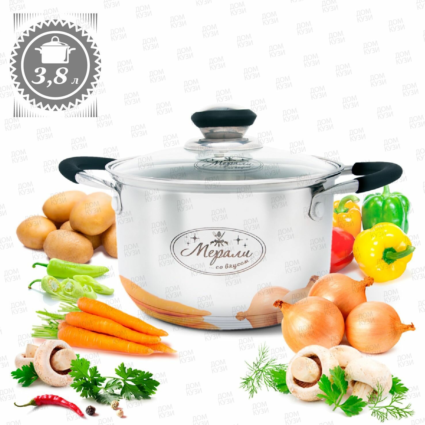 Кастрюля из нержавеющей стали с крышкой Мерали для газовых электрических и индукционных плит 3,8 л
