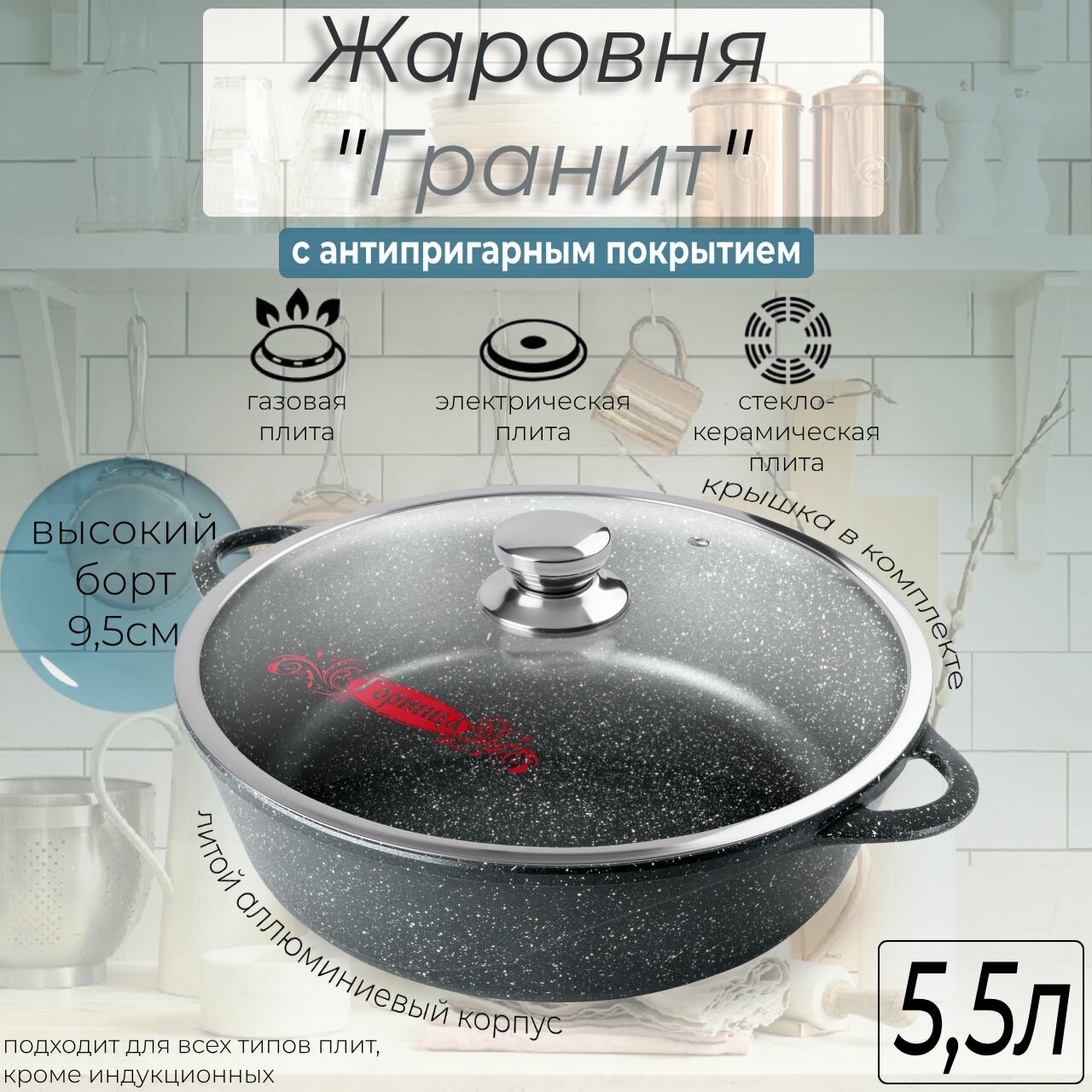 Жаровня 5,5л 320/95 Гранит с крышкой ж7132аг горница