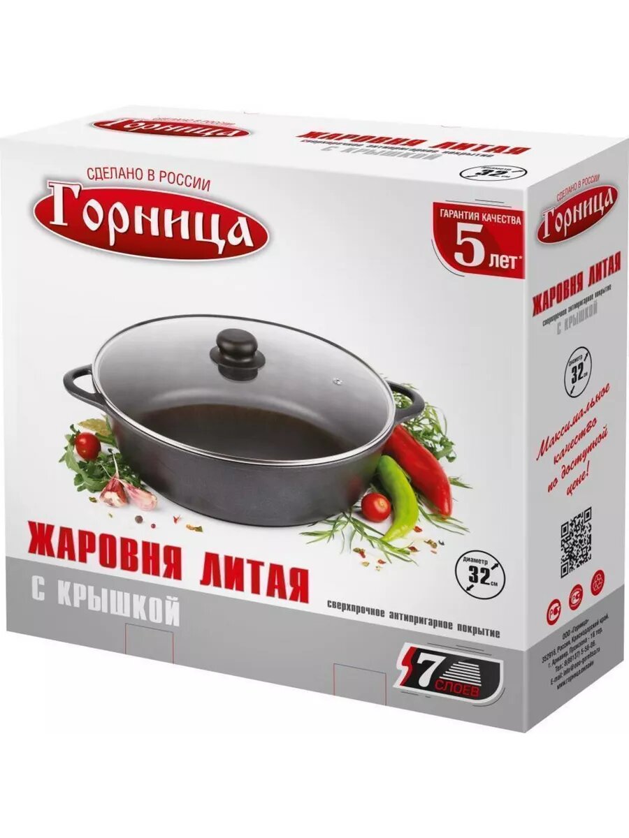 Жаровня 32 см, 5,5л., литые ручки, с крышкой, подарочная упаковка, серия Классик Горница