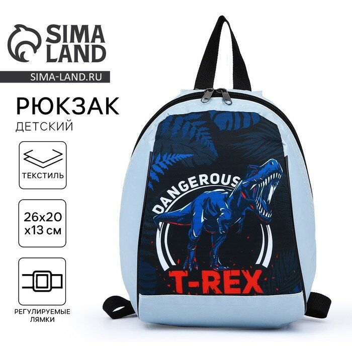 Рюкзак «Динозавр», 20х13х26, отд на молнии, серый (1шт.)