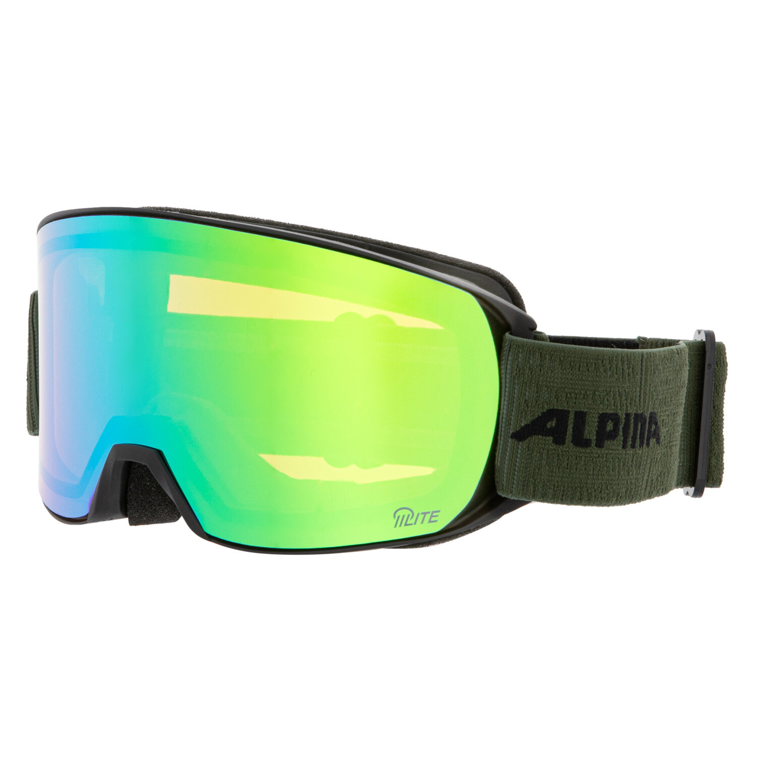 Купить Маска горнолыжная ALPINA Nakiska Q-Lite Black-Olive Matt/Q-Lite Green S2 (US:M)