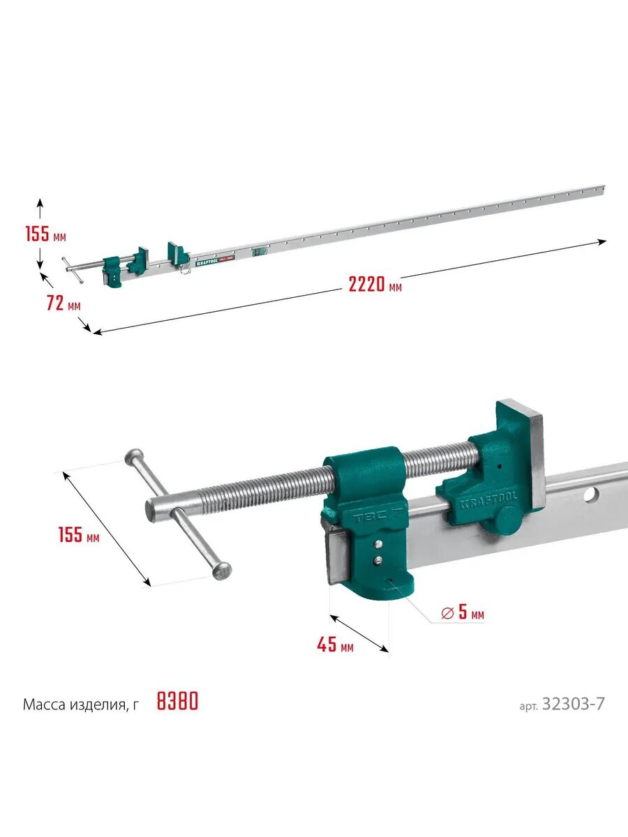 KRAFTOOL TBC/7 2000/55 мм, Струбцина с Т-образным профилем (вайма) (32303-7)