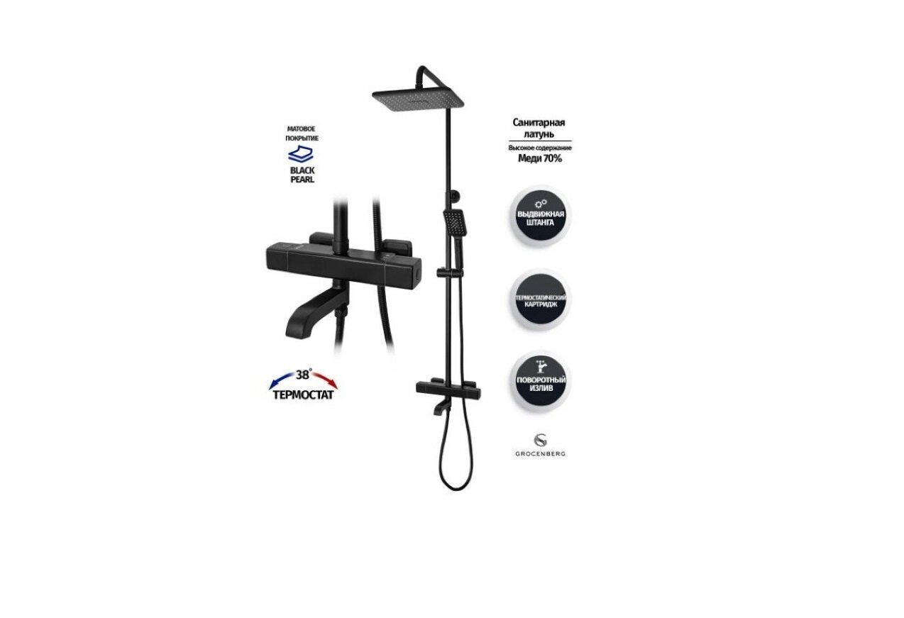 СохранитьДушевая система с термостатом и тропическим душем Grocenberg GB7005BL черная матовая интересное:
