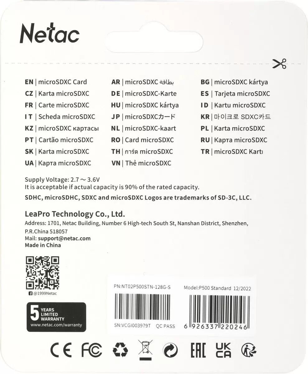 Карта памяти 128GB MicroSD class 10 NETAC интересное: