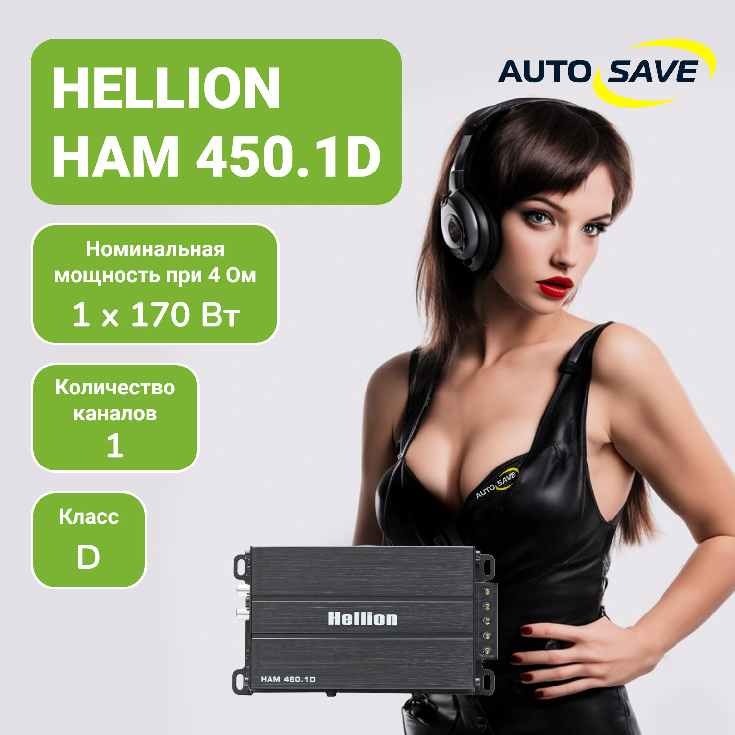 Автомобильный усилитель звука HELLION HAM - 450.1D, 1-канальный, для колонок и сабвуфера