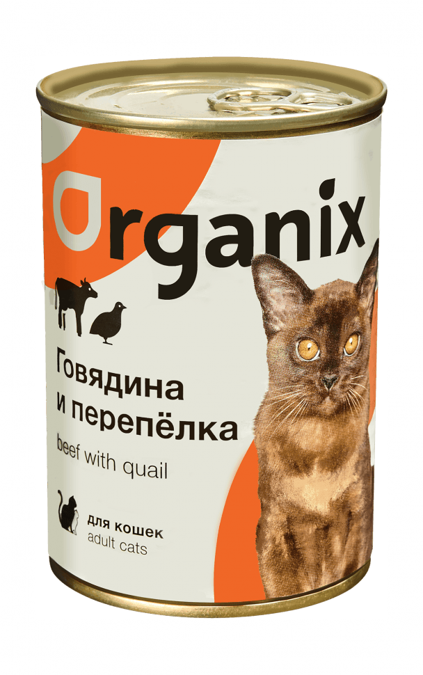 Влажный корм для кошек ORGANIX с говядиной, с перепелкой 410 г (паштет)