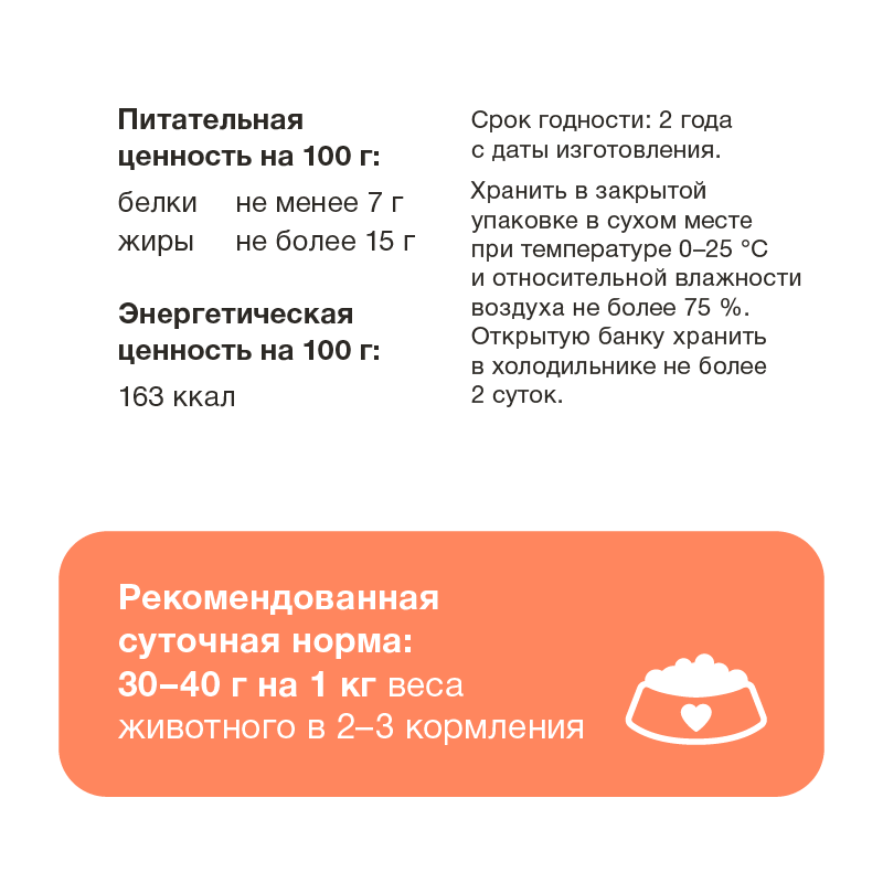 | Состав | говядина, печень, мясо перепелок, масло растительное, стабилизатор Е472с, вода |
