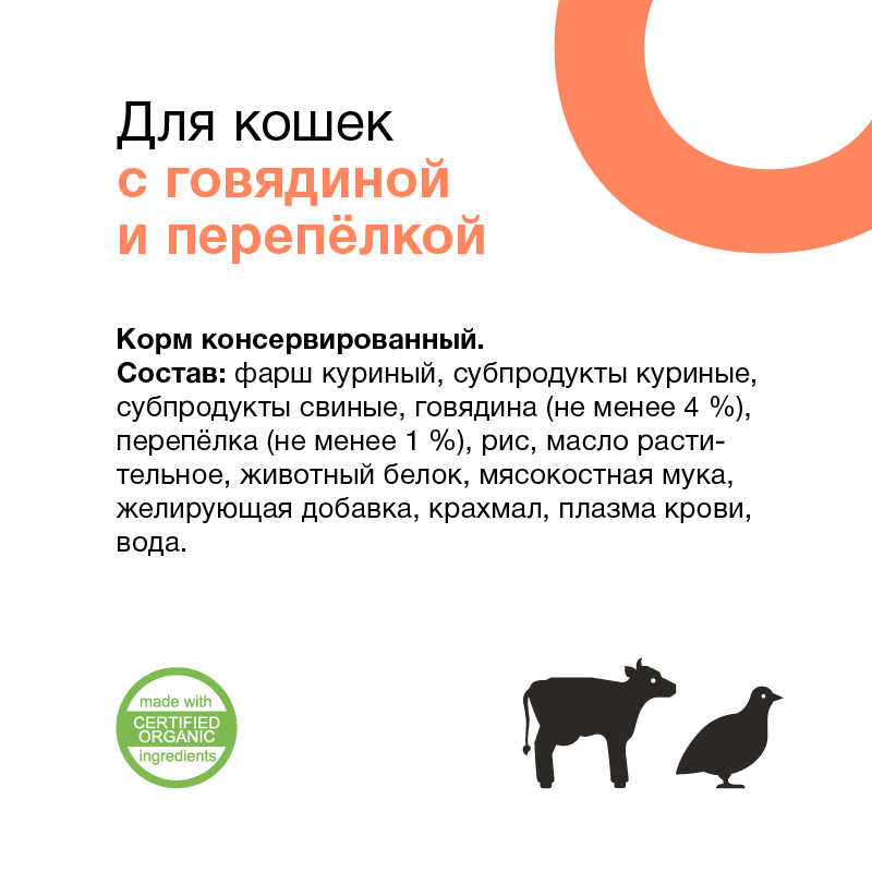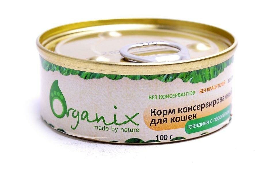 Влажный корм для кошек ORGANIX с говядиной, с перепелкой 100 г (паштет)