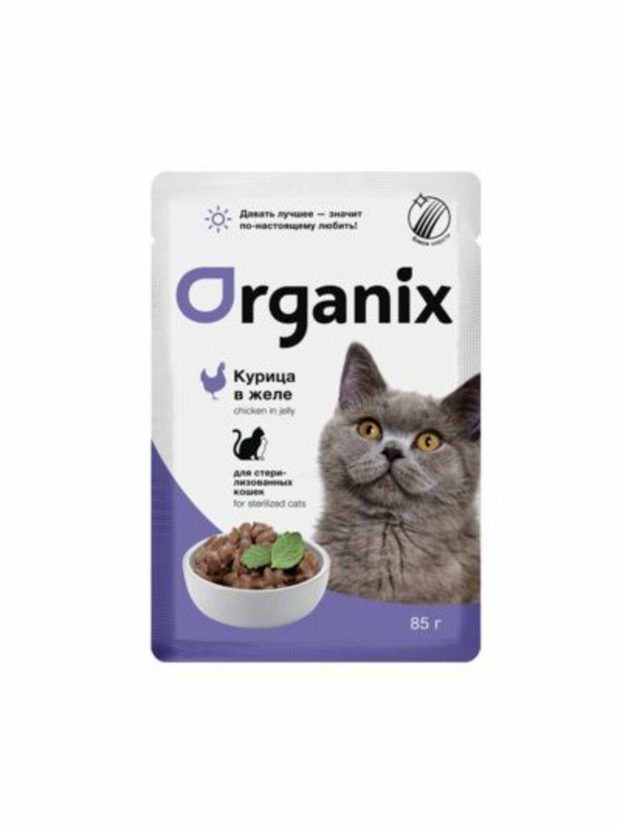 Organix Паучи для стерилизованных кошек курица в желе 0.085кг 1шт. 0.085 кг