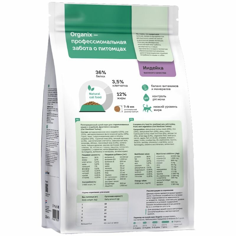 ORGANIX ORIGINAL ADULT CAT STERILIZED для взр кастр котов и стерилизов кошек с индейкой 1,5 кг
