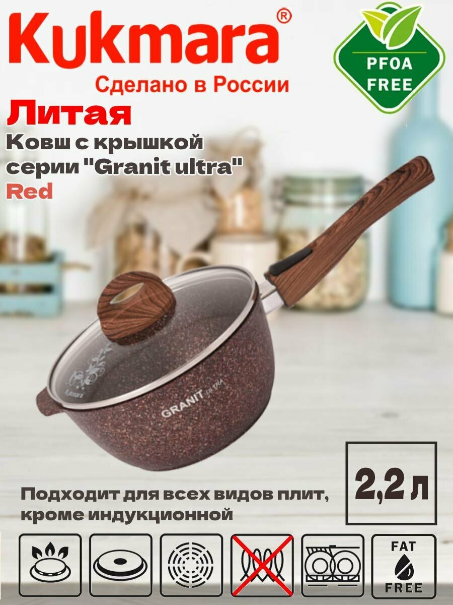 Ковш алюминий, антиприг, 2.2 л, съем руч, Kukmara, Granit Ultra, кга0225а, красн