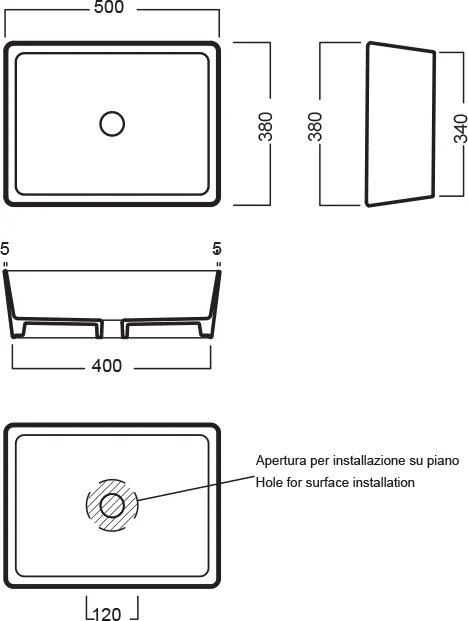 Раковина накладная Hatria H.HOUR 11.00 S 25 - белая матовая (A0Y1VH25)