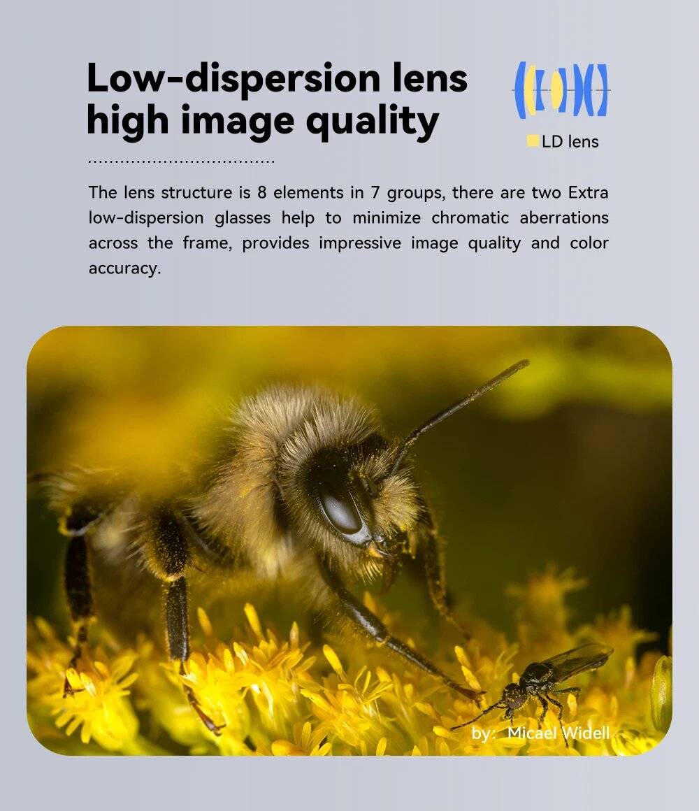 | Отзыв: | Купил первый фотоаппарат беззеркалку. До этого фотографировал иногда жуков на смартфон и решил взять макрообъектив. Вообще не пожалел. Доставили за неделю. При подключении к камере надо включить в настройках съёмку без объектива. Я в восторге )) Надо дождаться погоды и поехать в лес букашек поснимать. |