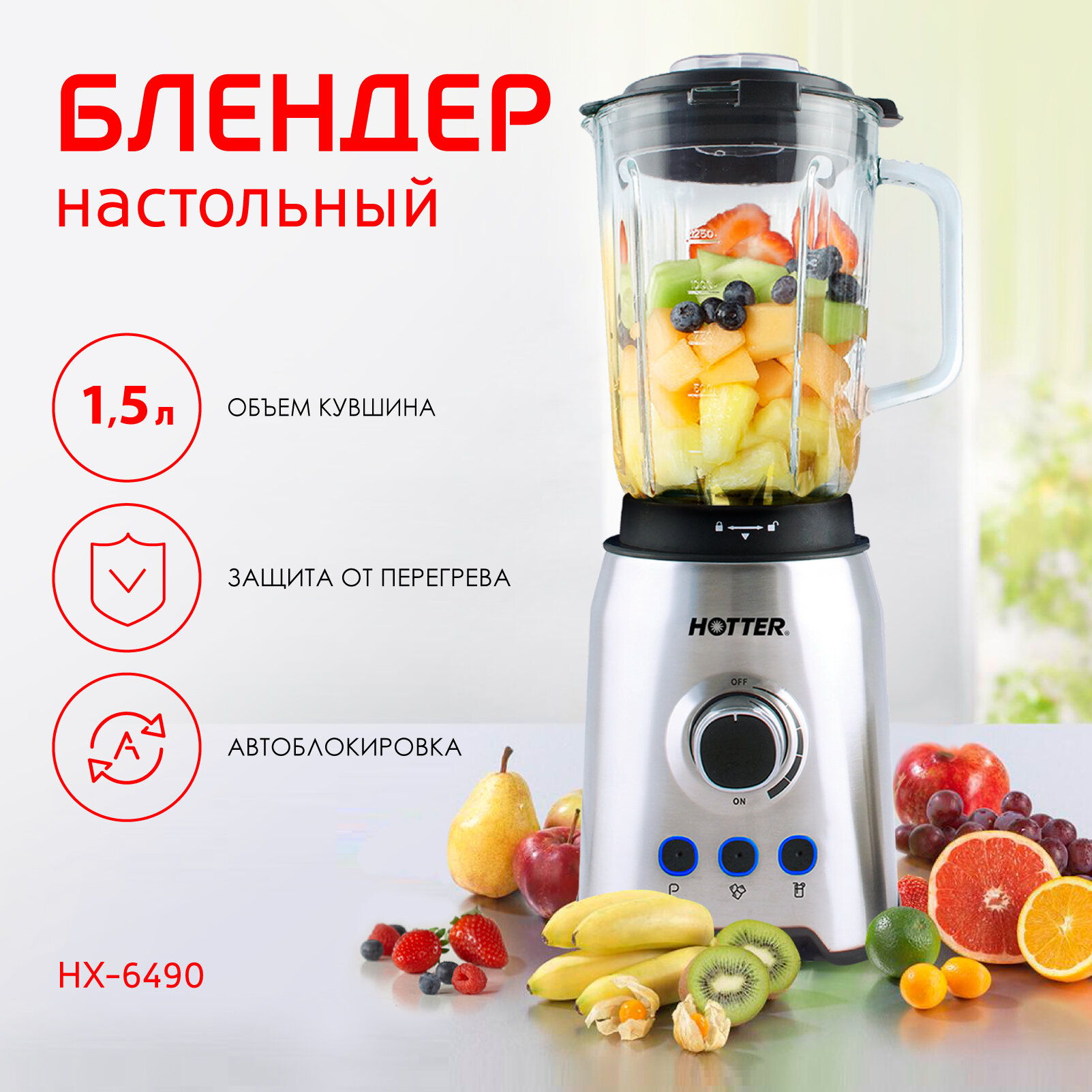 Блендер стационарный HOTTER HX-6490 стеклянный кувшин 1,5 литра ,3 режима и плавная регулировка скорости интересное: