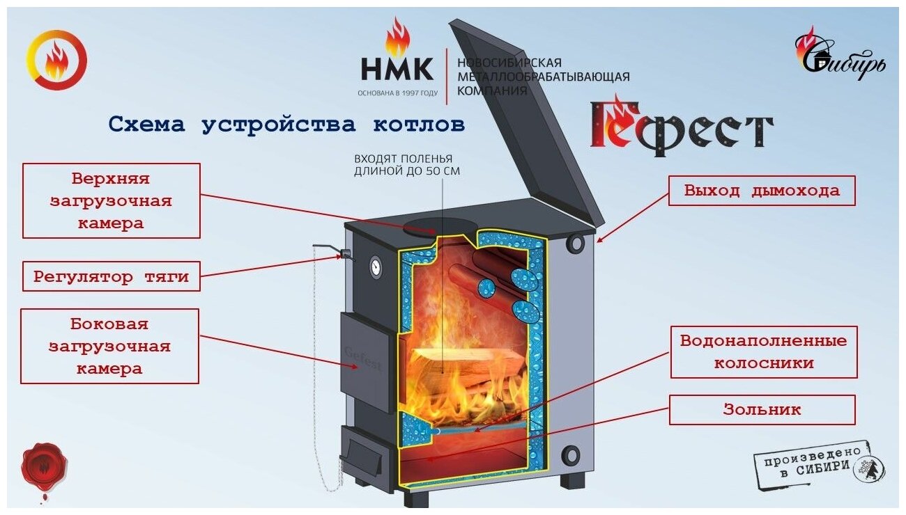 СохранитьКотел твердотопливный НМК Сибирь-Гефест (Gefest) КВО-30 напольный интересное: