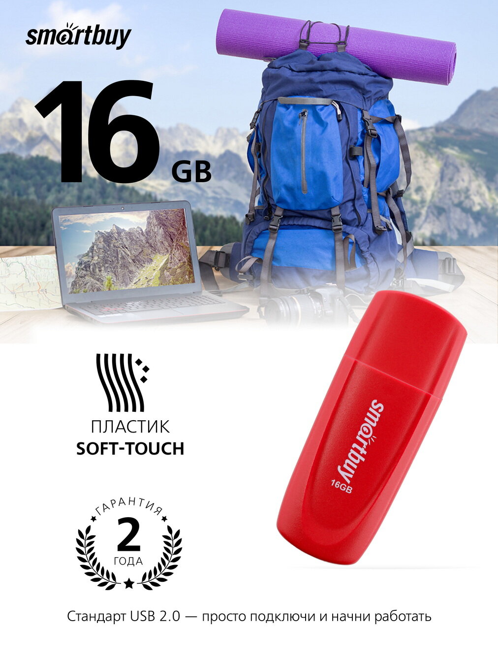 USB Флеш-накопитель - Smart Buy Scout, 16 Гб, пластик, красный, 1 шт.