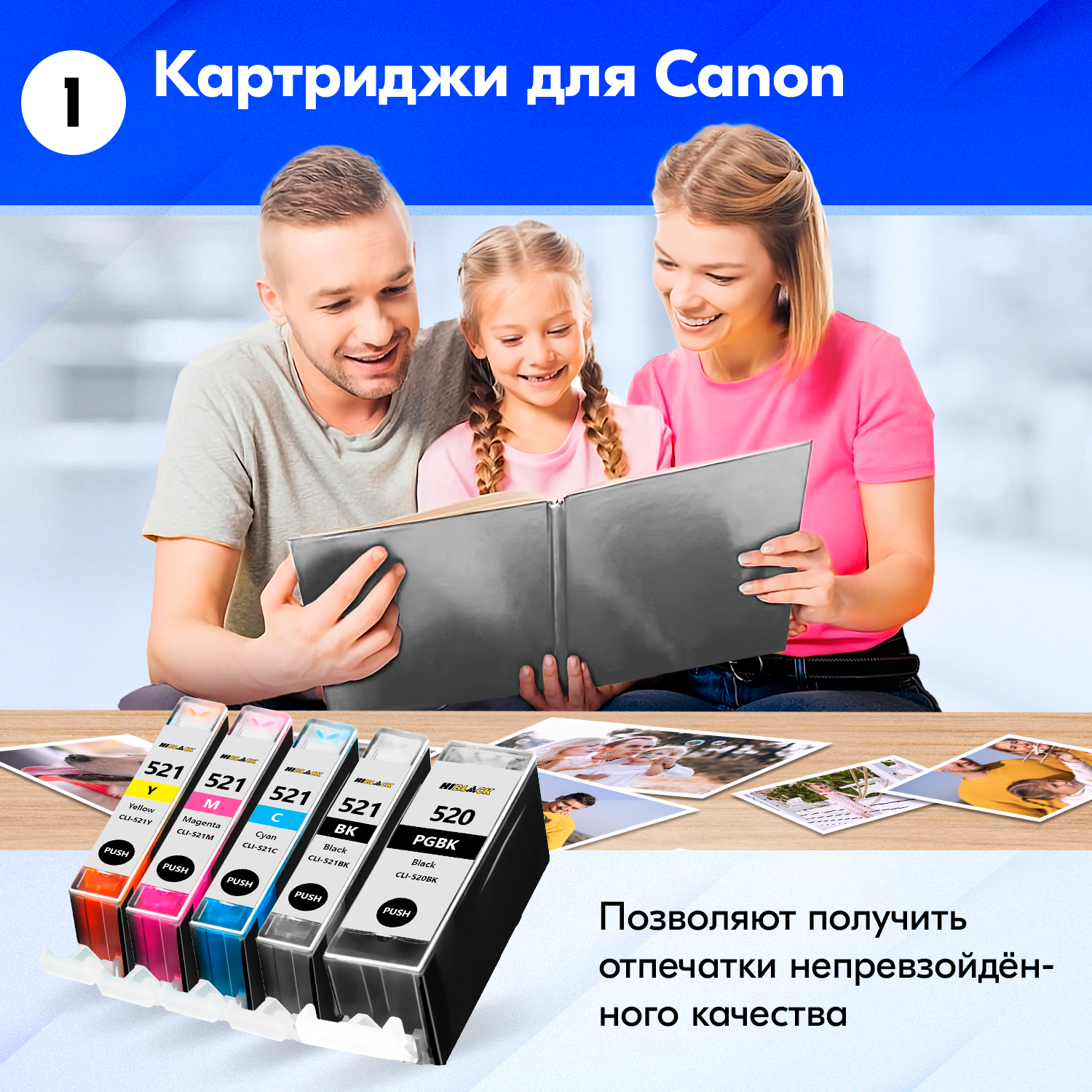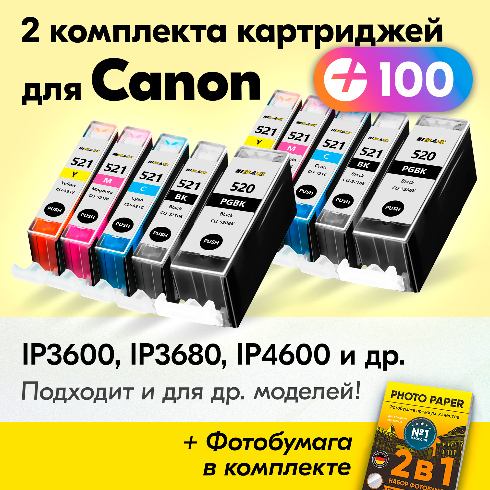 Купить Картриджи для Сanon PGI-520, CLI-521, Сanon PIXMA iP3600, iP3680, iP4600, iP4680, iP4700, MP540, MP545, MP550 и др. с чернилами, Черный, Фото Черный, Голубой, Пурпурный, Желтый, 10 шт.