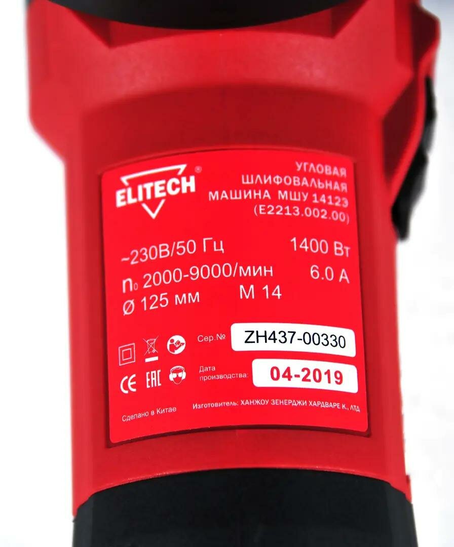 Машина шлифовальная угловая электрическая ELITECH МШУ 1412Э (E2213.002.00)