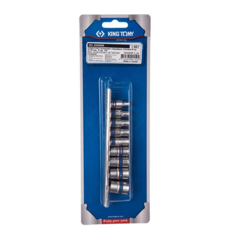 Набор торцевых головок 1/4 , шестигранные, 4-13 мм, 9 предметов KING TONY 2509MR