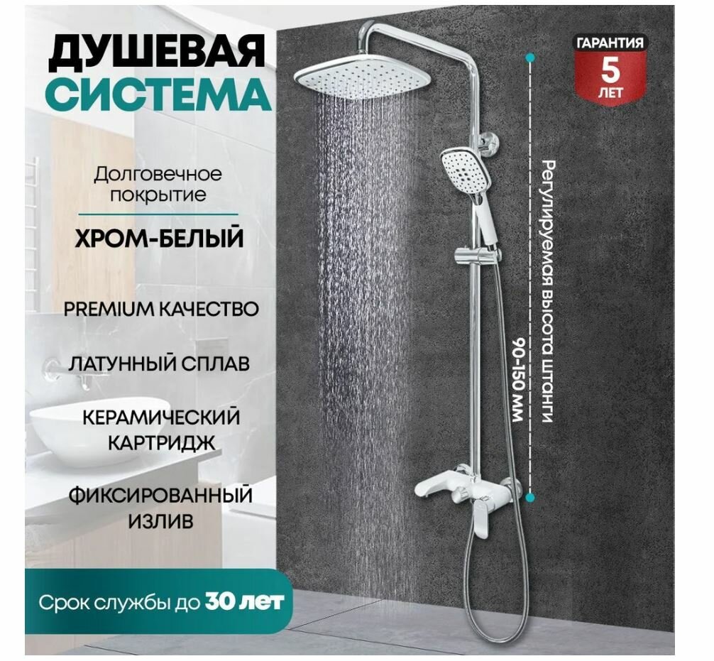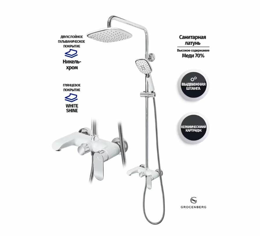 Душевая система со смесителем Grocenberg SHOWER GB7010 белый/хром интересное: