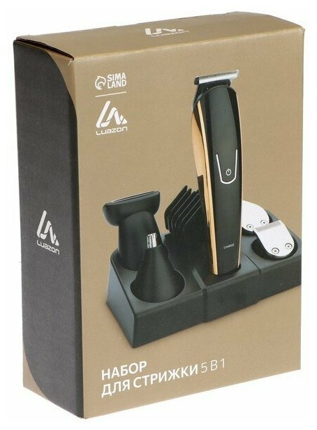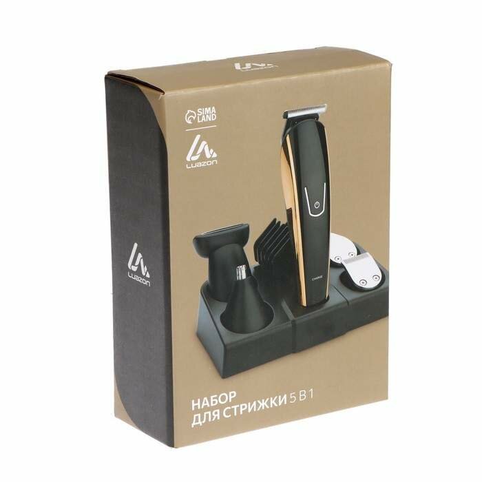 Набор для стрижки LuazON Ltri-15, 5 в 1, 5 насадок, триммер, 6 Вт, Акб, чёрный / золото Luazon Home .