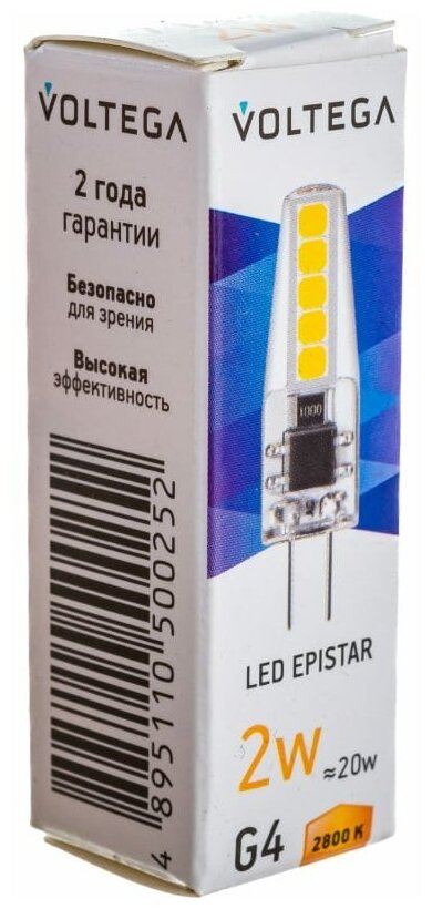 Лампочка светодиодная G4 форма капсульная 2W теплый свет Voltega Simple Capsule 2800K 1 шт. Упаковка 6 шт.
