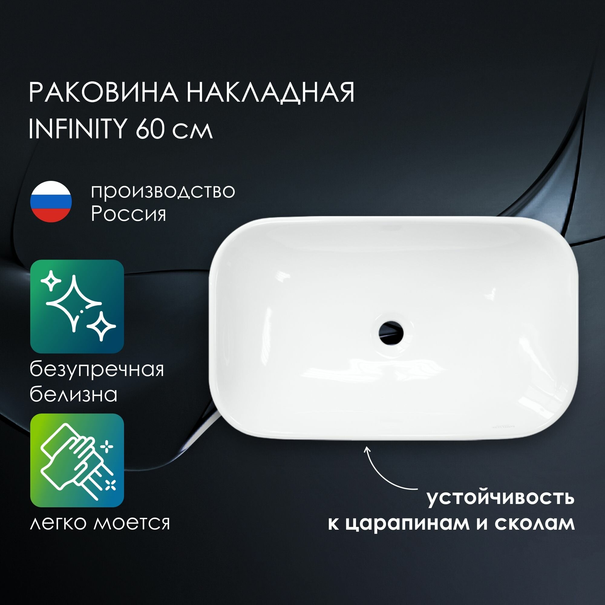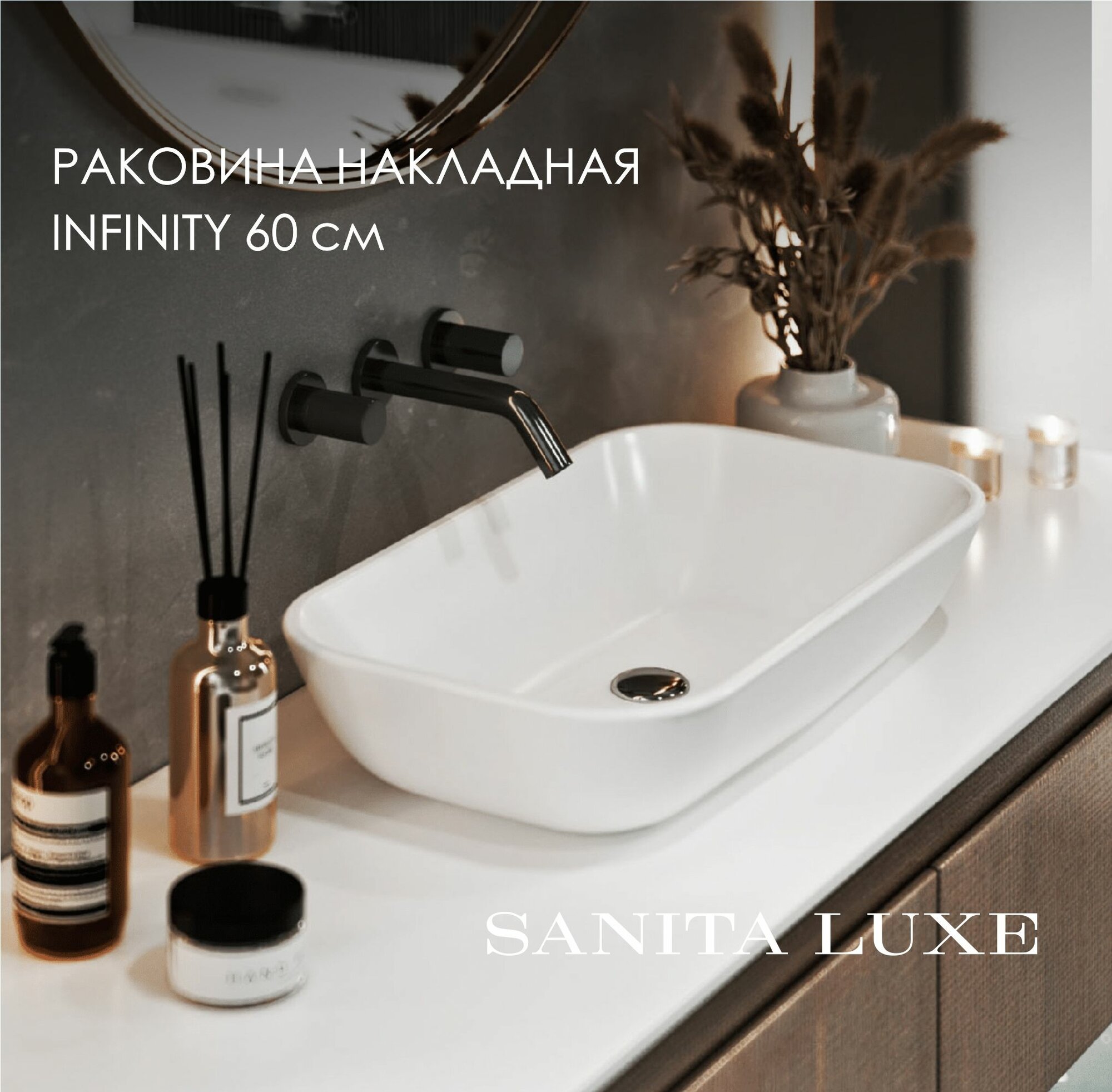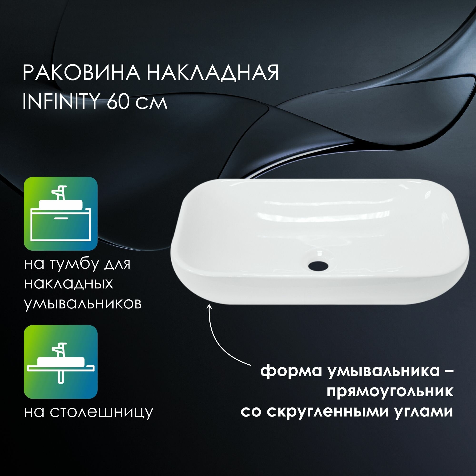 Раковина накладная Sanita Luxe Infinity 60 WB.CT/Infinity/60-C.Shelf/WHT. белая