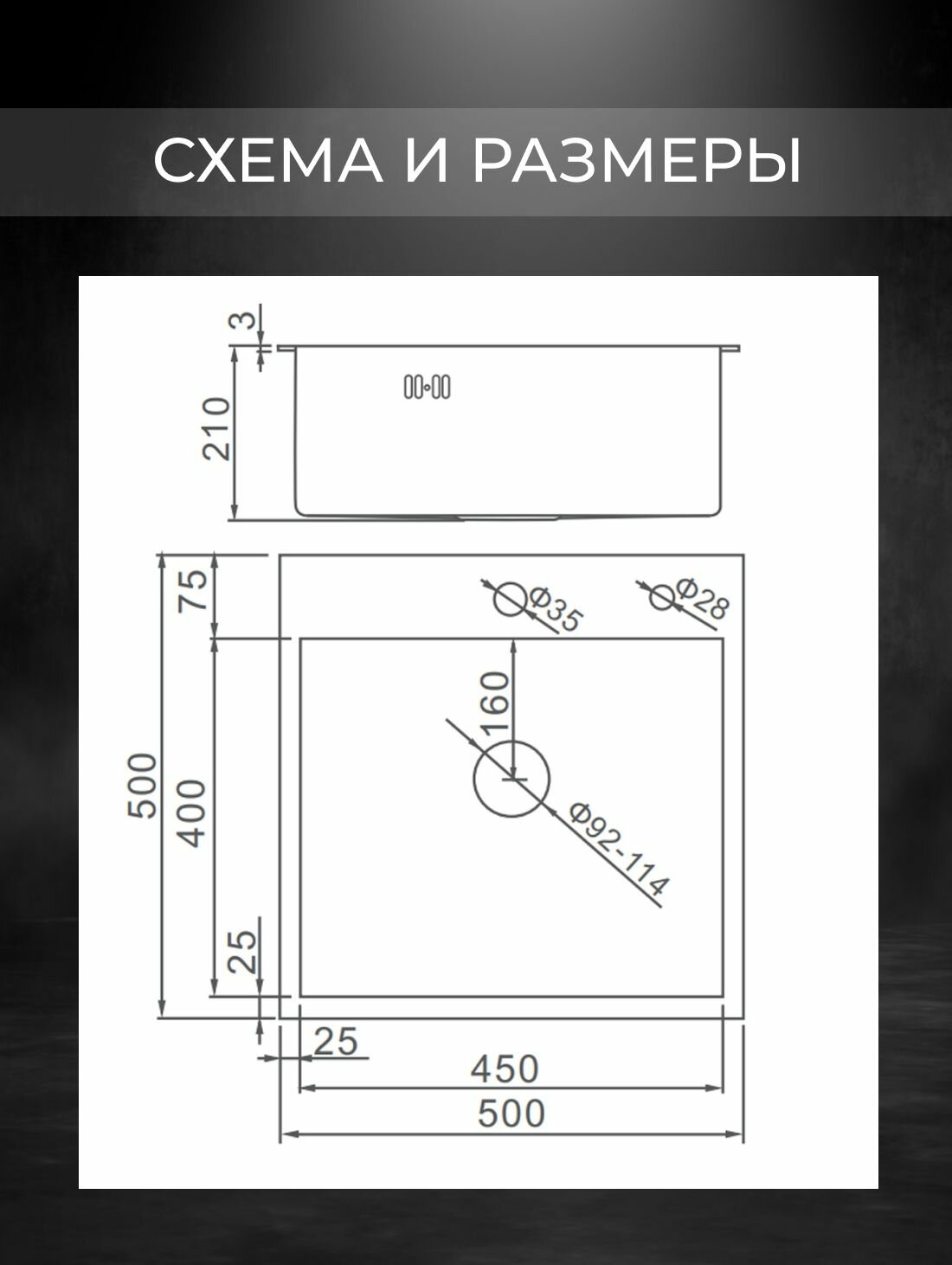 | Особенности | PVD покрытие / дозатор для мыла / коландер / отверстие под смеситель / сливная арматура |