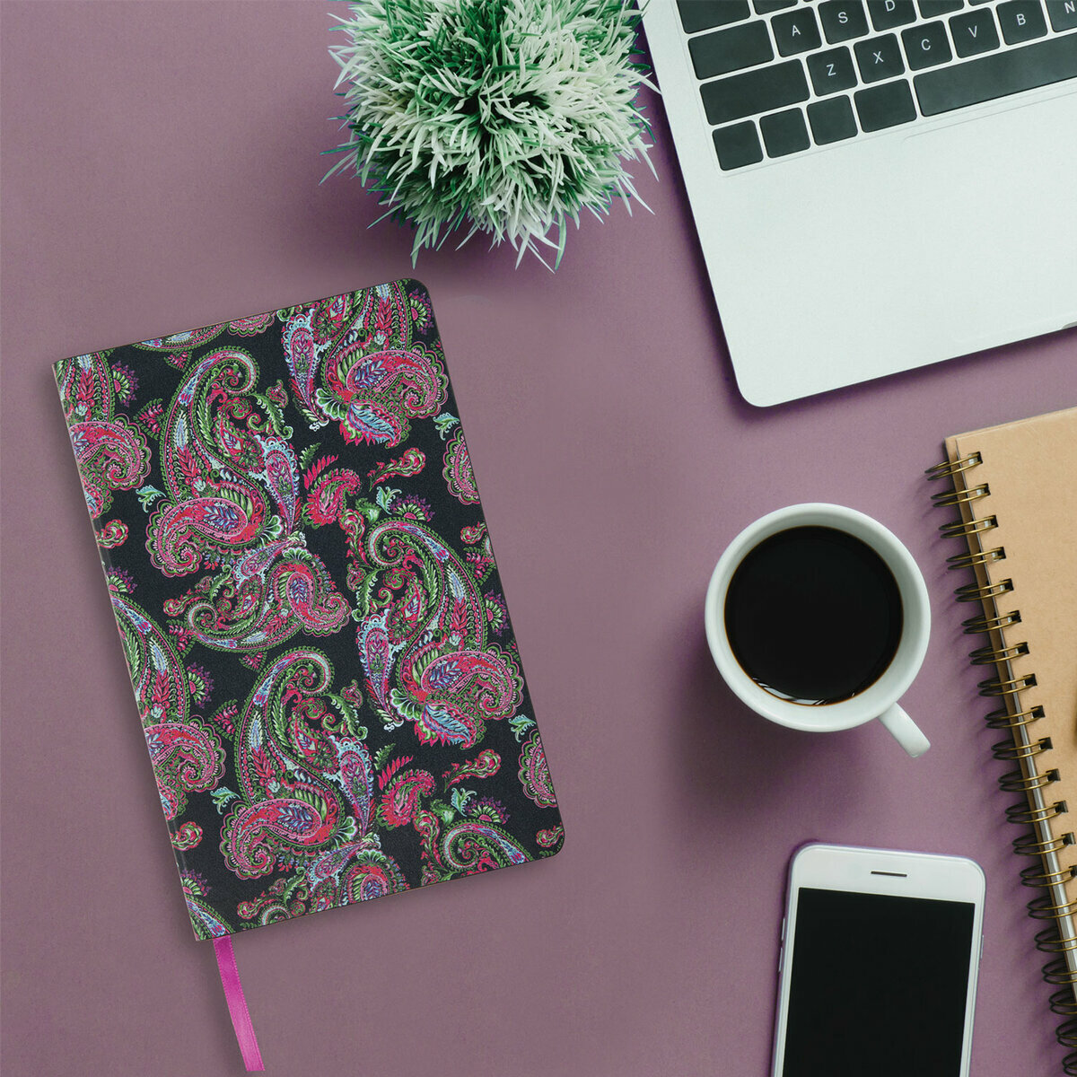 Комплект 5 шт, Ежедневник недатированный А5 (138х213 мм), BRAUBERG VISTA, под кожу, гибкий, 136 л., "Paistley", 112039